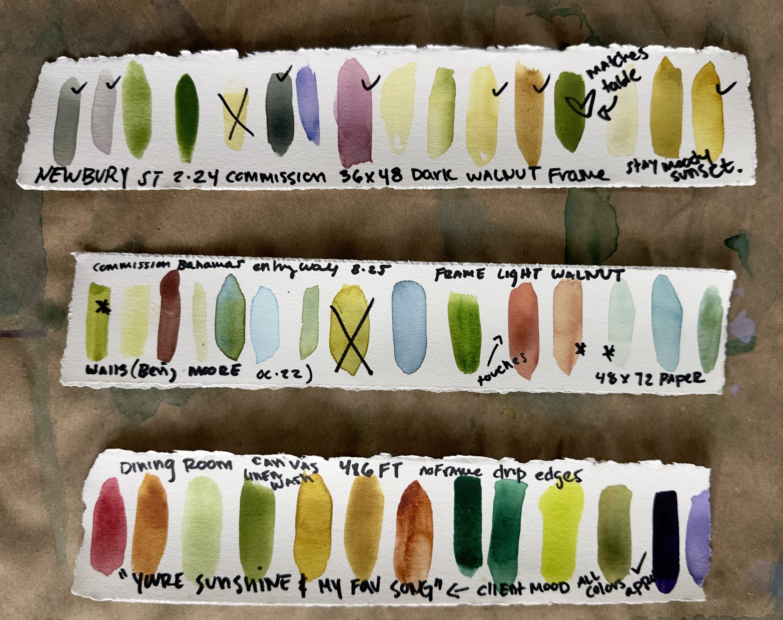 Commissioned works allow designers and collectors to customize scale, palette, and surface while closely following the creation of their piece. Email for my information sheet and my current wait time.